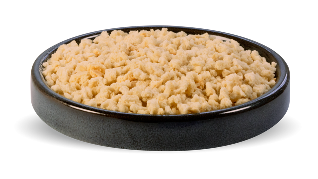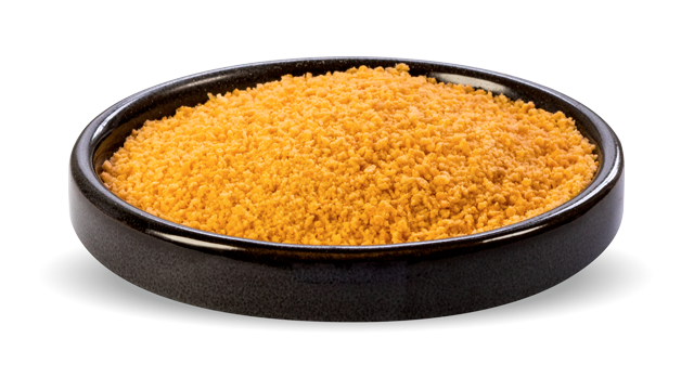 - Knuspriges, orangerotes Paniermehl mit kurzem Biss und großer Anwendungsbreite.